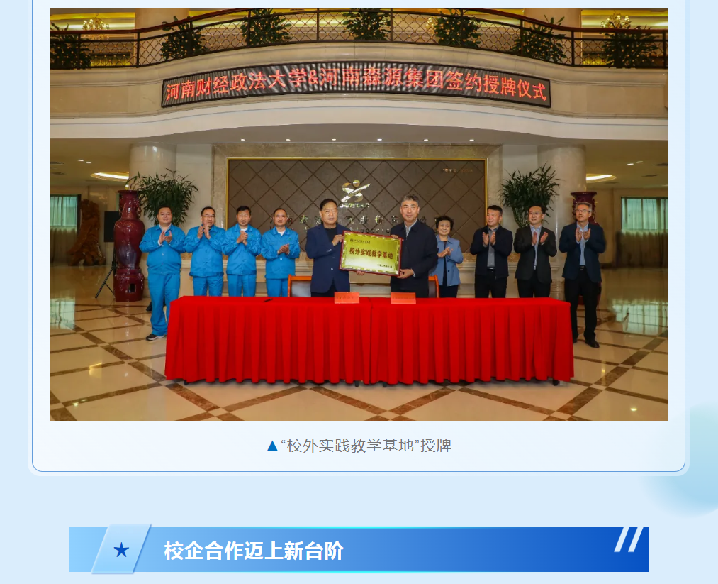 AG百家乐集团与河南财经政法大学将以此次战略合作协议签订、“校外实践教学基地”授牌为契机,推动双方校企合作迈上新的台阶。